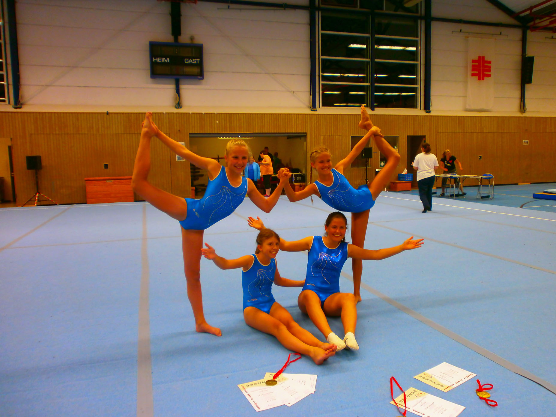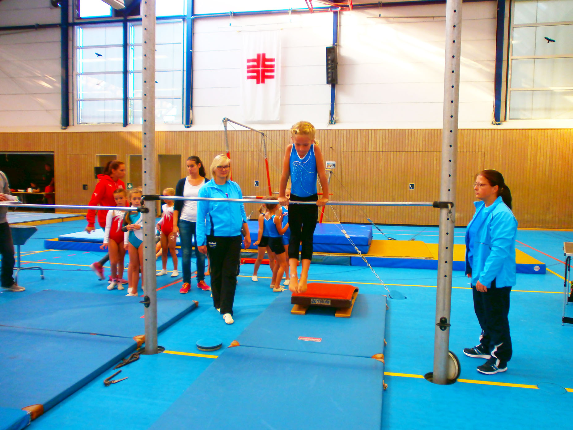 Unter der Leitung von Wolfgang Böhm und Kathrin Eiermann erleuchtet die Kinderturnabteilung die Bühne. Das Querflöten-Duo Chiara Schmid und Katharina Wörle spielt Weihnachtslieder und Ausschnitte aus der Zauberflöte.